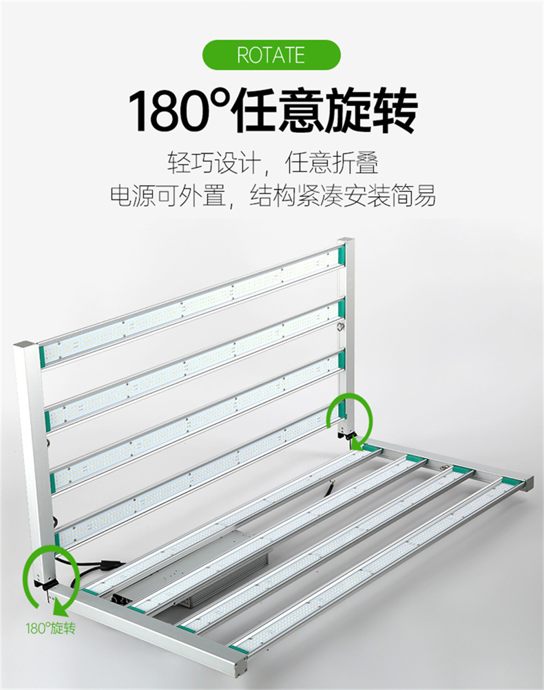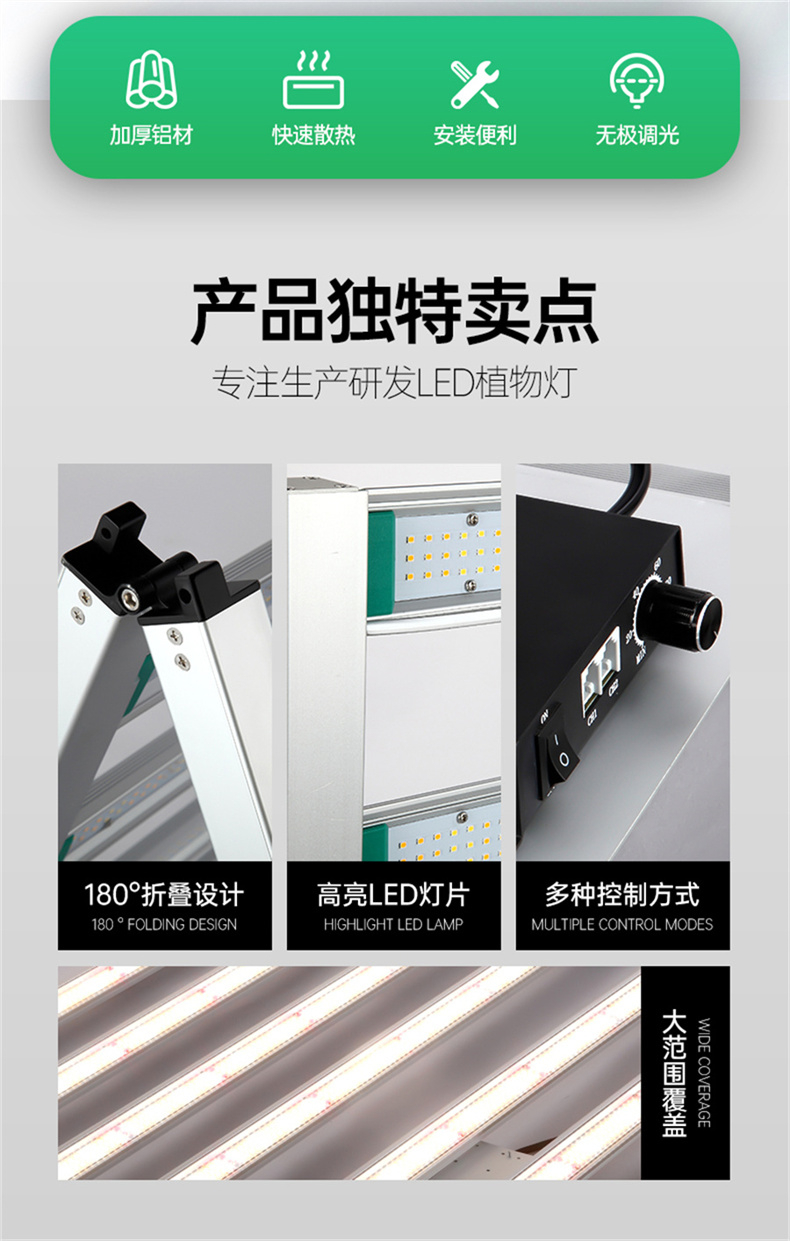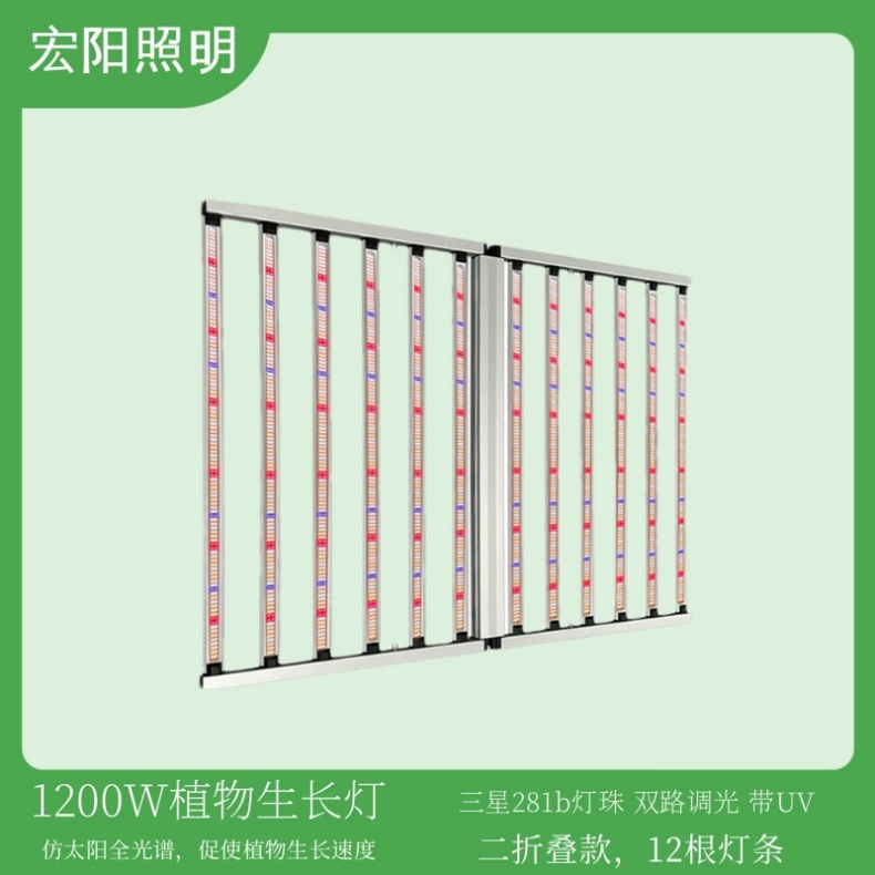 出口泰国1200W植物补光灯 两折叠款12根灯条植物灯 双路调光带UV植物灯